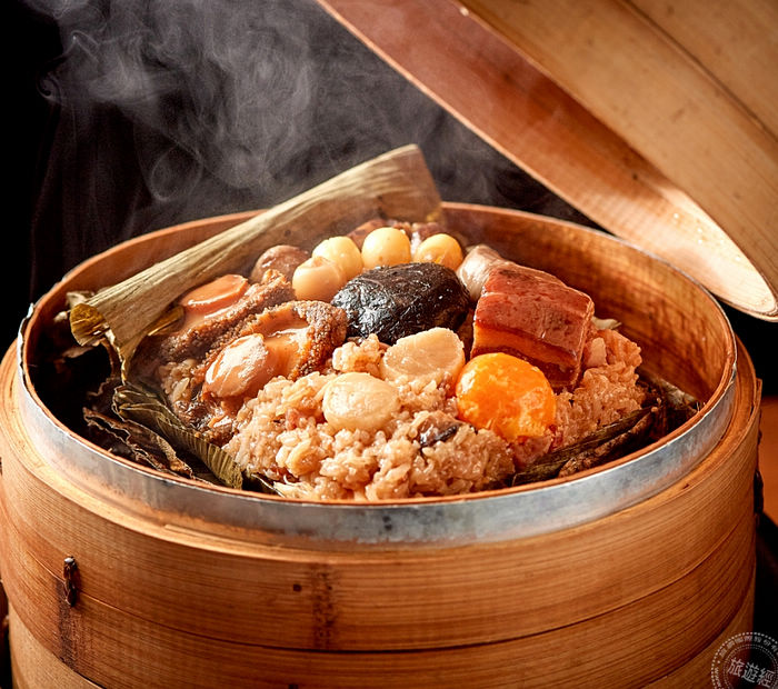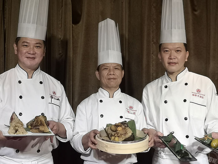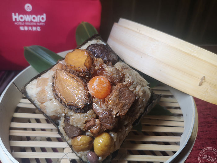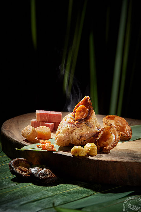有新意的粽子,包括:「東港櫻花蝦海味粽」選用長糯米與干貝汁和鮑魚汁拌勻入味蒸熟後,搭配著酥脆的櫻花蝦、干貝、開陽、香菇和XO醬,最後把金沙炒鍋後搭配響螺一次包起來的;海鮮控必吃的「海鱻香味粽」將花膠、魚鲝、蒲燒鰻等珍饈食材紅燒入味,除了滿滿海味外,再把味道香濃的宜蘭鹹鴨蛋黃入餡;結合山珍海味的「金腿鮑魚粽」,海味由紅燒的鮮甜南非鮑、北海道散干貝,陸味則以台灣豬五花肉醃製為家鄉肉,搭上金華火腿提香,豬肉鹹香軟嫩,另還有大油雞腿等、配著百靈菇、白果的口感,交融海陸鮮味!