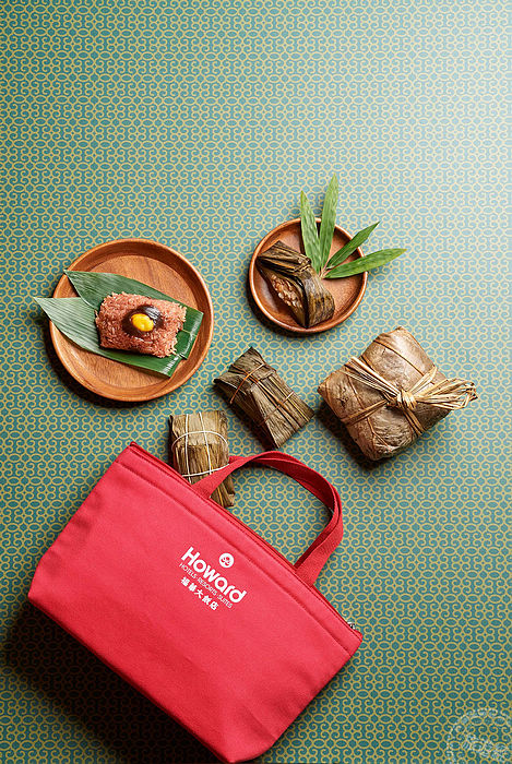 「辣味犇粽」,主廚放入乾煸後朝天椒之焦香味,具有烙烤風味及沙姜、姜、蔥、生抽、老抽及冰糖等多種辛香料,餚制數小時製成,經過3個小時燜煮富有香氣,Q彈牛筋、香軟牛肋條、彈牙牛肚三大部位,凸顯牛中珍寶的獨特風味;「干貝燻香櫻桃鴨粽」則是海陸雙享創意肉粽,特選宜蘭櫻桃鴨,在製作過程中輔以燻香櫻桃鴨油拌飯,包裹鮮味十足的干貝與香濃起司,熱呼呼的燙口起司口感在端午粽中別出心裁。