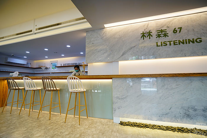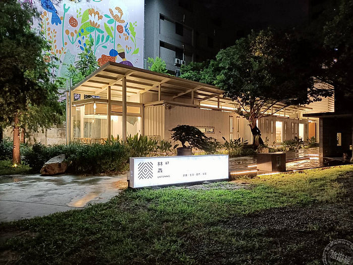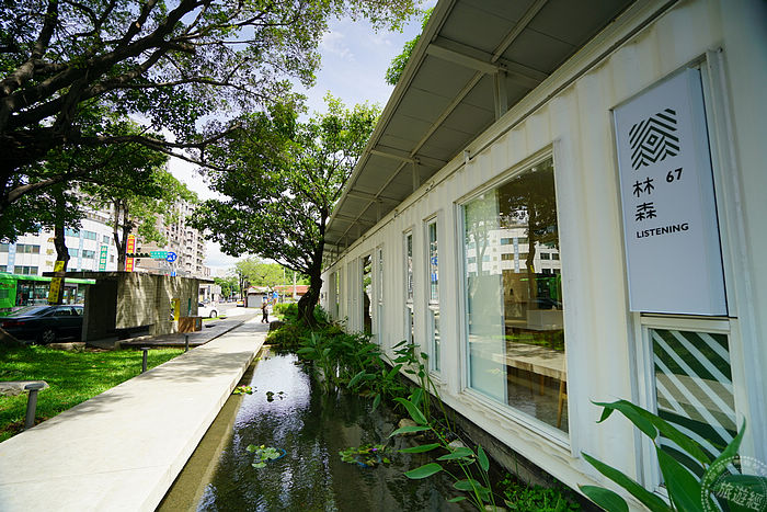 車水馬龍熱鬧的台中市西區林森路及三民路街口,令人驚艷一偶的綠意扶疏、高樹花草、流水魚游、蛙鳴鳥叫的都市綠洲裡,矗立一間外觀潔白、線條簡潔的網紅級貨櫃透明玻璃屋建物,不禁令路人及民眾放慢腳步,好奇一窺感受這座都市塵囂中的桃花源自然生態餐廳──「Listening林森67」。