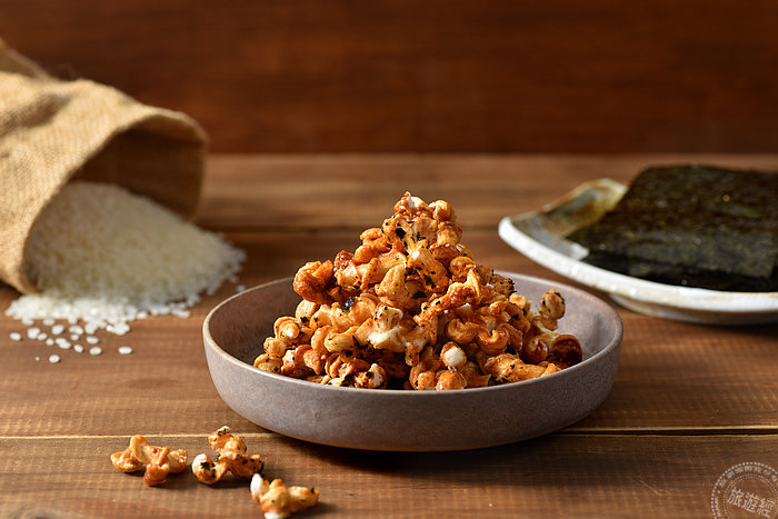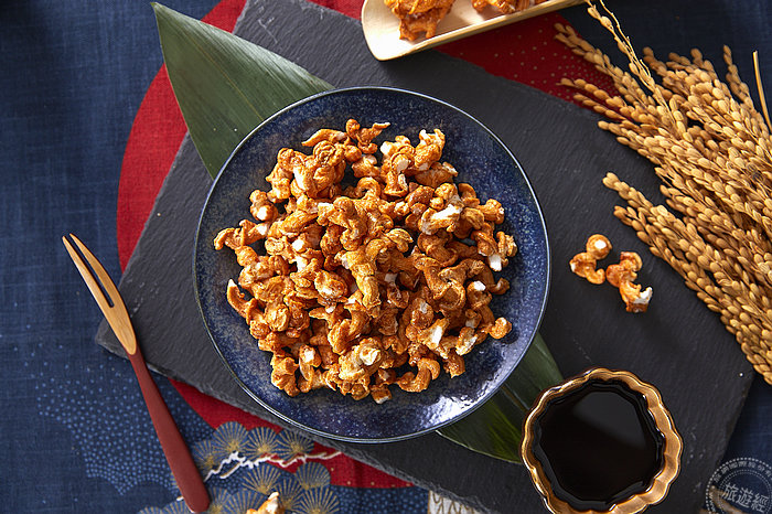 日式醬油味,一次嚐出仙貝米菓香氣與爆米花的酥脆口感