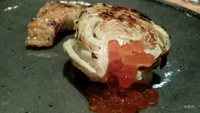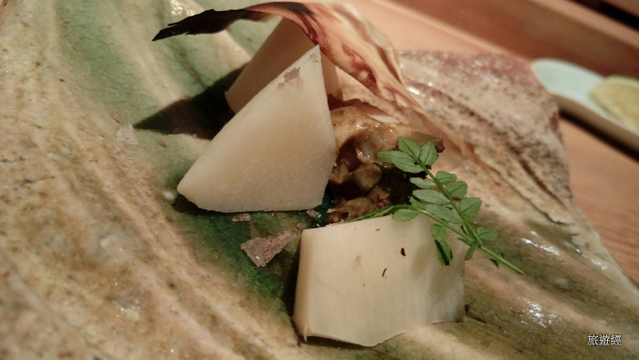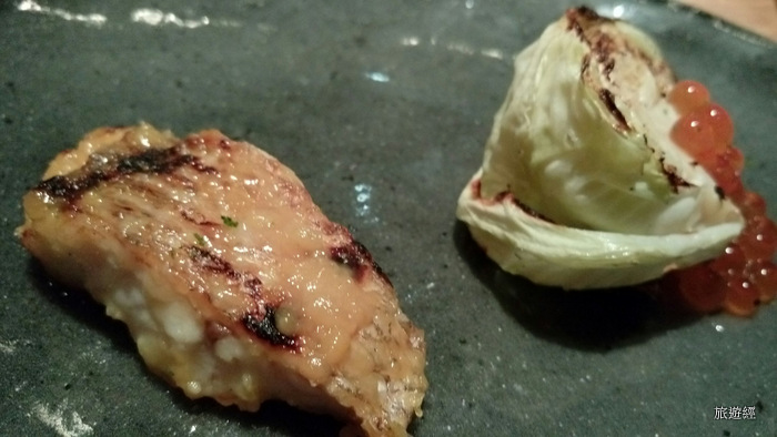 其中炭火有時並不容易掌握,但晴山「炭火」吧檯區的師傅們,相當著重溫度的控制,尤其「炭」、「火」與「食材」三方的狀態都相當了解並能做適度的掌控。讓食材呈現最佳的熟度與口感。炭烤用的材料,有的備長炭,增加炭香風味,有的採用稻草燻烤,讓料理也能增添了淡淡的稻香,甚至你還能看到師傅把食材直接放在備長炭炙燒,來取替坊間常用的瓦斯噴槍炙燒!