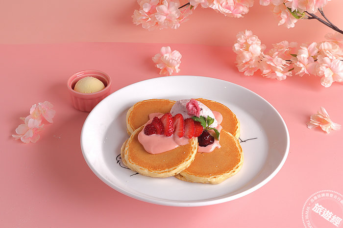 春天的季節,「杏桃鬆餅屋」創辦人門崎小姐將櫻花與櫻桃,做了一場有趣連結,融合全新系列鬆餅,流露著粉嫩鮮奶油的「櫻姿曼妙厚鬆餅/270元」、「春櫻爛漫薄鬆餅/250元」,以天然做法不使用化學色素,純粹以白巧克力、鮮奶油與草莓醬調製出櫻花緋紅意象,滑順酸甜的口感,為鬆餅增添風味之餘,鬆餅上由黑櫻桃餡、奶油起司製作的櫻桃起司醬、糖漬櫻桃餡、新鮮草莓,以及最重要的鹽漬櫻花,不僅充分詮釋櫻花與櫻桃的美味,也透過櫻桃的成熟風格平衡了櫻花的浪漫鹹甜,而喜愛草莓甜香滋味的消費者,還可搭配附贈的日本伊勢草莓醬一起享用,感受春季最浪漫的美味午茶。