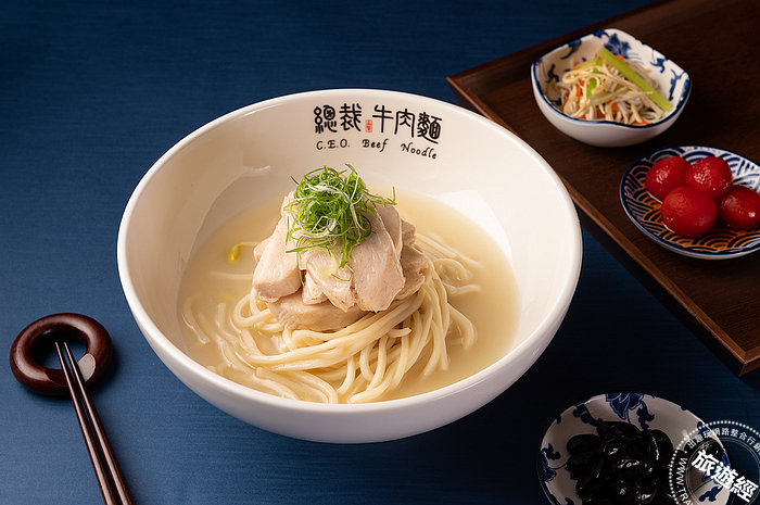 當然不能錯過還有人氣招牌──「總裁牛肉麵」(280元+10%),以牛骨、豬骨、雞骨熬煮作為基底,再使用澳洲牛腱燉煮一個半小時,牛腱肉筋多且肉質鮮嫩,含豐富膠質,溶入牛筋膠質熬煮8小時的湯頭,結合大紅袍、花椒、老薑等食材紅燒,搭配Q彈不易軟爛的嚴選麵條,四段工序激盪出湯、肉、麵三位一體的絕妙口感,微辣的香麻滋味令人胃口大開!