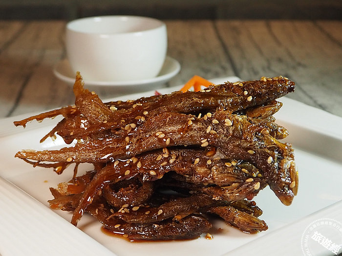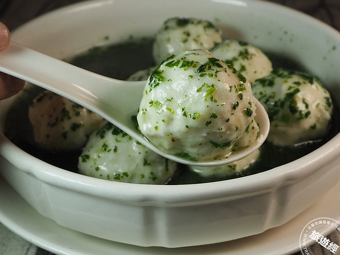 「薺菜芹香墨魚」以新鮮的墨魚肉純手工製作,不加魚漿以及任何脆粉,雖然入口偏軟,但一口咬下清楚吃到墨魚鮮甜味。並加入薺菜點綴口感極為清爽不油膩。