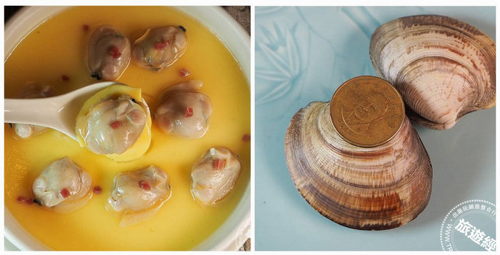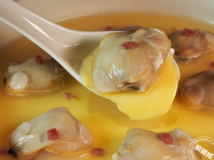 除了蔬菜外,也別錯過這一道「牛奶貝燉水蛋」,牛奶貝外表與文蛤相類似,是事農委會水產試驗所發展出來給大家養殖的經濟貝類,價格較文蛤貴了二成,文蛤養 10 個月、牛奶貝養 1 年6 個月,是蛤蜊中的巨石強森,比50元硬幣大很多的鮮香Q 彈的牛奶貝在滑嫩的水蛋配上,鮮甜海味、營養豐富。