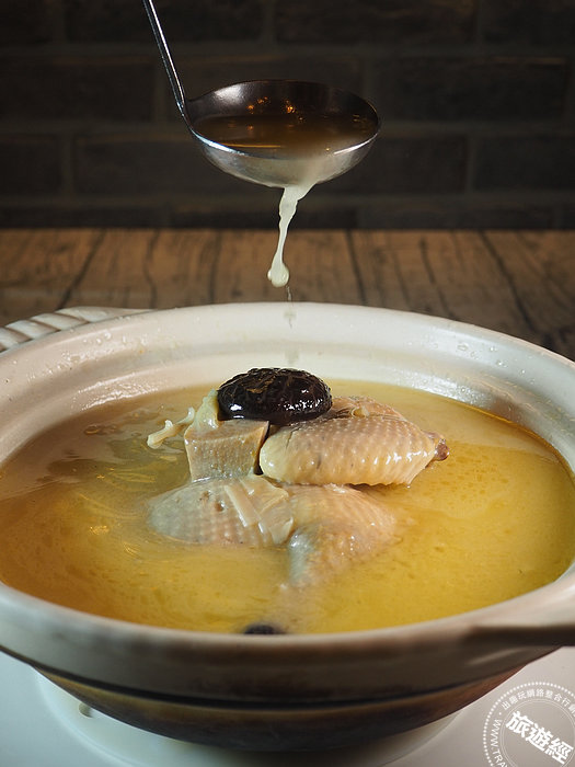 想喝湯的民眾,可以多種湯品可說選擇,其中饕客推薦──「砂鍋火烔雞湯」以老母雞及富含膠原蛋白的豬皮作為湯底,先以慢火熬煮一天,在加入整隻的小土雞、火烔、精燉 36 小時而成,最特別湯頭就用了2 隻雞熬製,一口都是精華,醇厚香濃的好滋味。