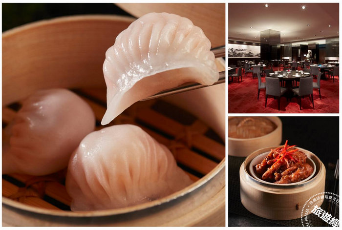 寒舍食譜推平日午間港點吃到飽,(左圖)寒舍蝦餃皇;(右上)台北寒舍艾美寒舍食譜廳景照;(右下)蠔汁鳳爪皇