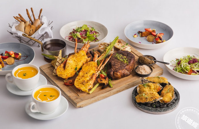 【慕軒飯店】推出「海陸總匯雙人外帶餐」3,980元,在家也可品嘗12盎司美國安格斯肋眼牛排、整尾法式莫爾內焗龍蝦及起源美國紐奧良的洛克菲勒焗牡蠣四顆