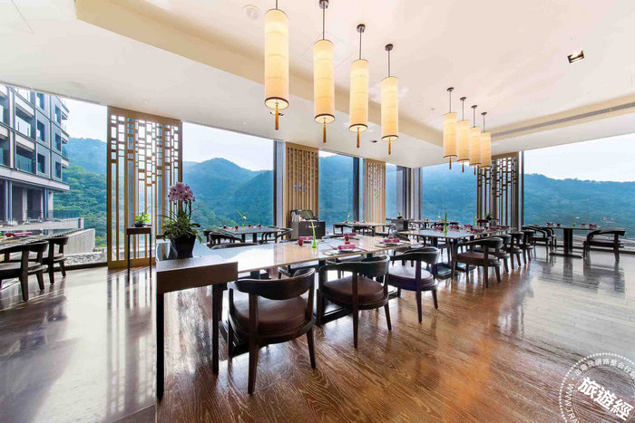 北投麗禧中式餐廳雍翠庭擁有三面環景落地窗,可在丹鳳山的綠意中享受用餐時光