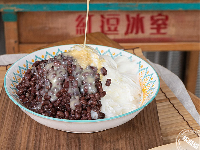 紅逗冰室的高人氣冰品紅豆牛奶雪花冰吃起來甜而不膩。