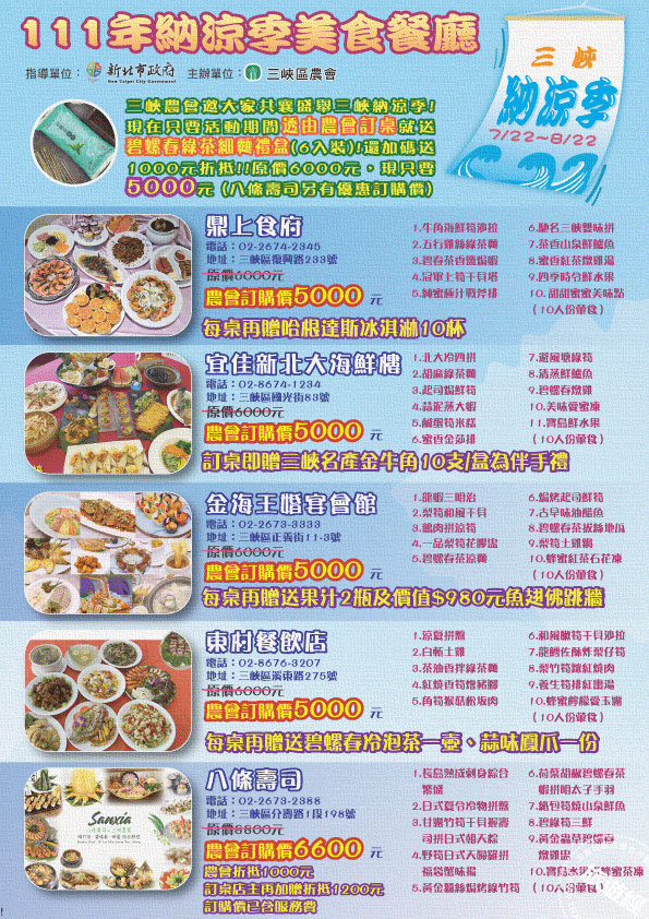※.三峽納涼季餐廳訂桌優惠: