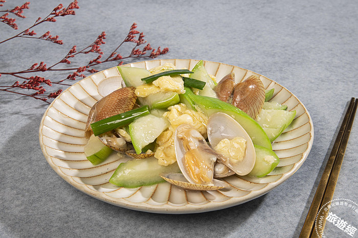 酥脆爽口的「優格酸瓜小酥肉」,將傳統的鹹豬肉以西式手法賦予新意,包裹完美比例的麵衣酥炸,佐特製酸甜蜂蜜優格醬,入口酥脆帶來微微的蜜香與醃黃瓜的酸香,讓人耳目一新的新吃法;最對時的「絲瓜炒花甲」,清甜的絲瓜與鮮美的花甲一同燉煮,鮮味飽滿的翠綠絲瓜帶有滑蛋香氣,是最經典的家常料理。
