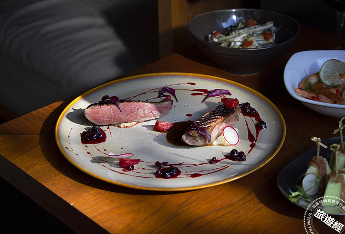 【慕軒飯店】GUSTOSO餐廳推出「廣寒香櫻桃鴨胸春季野莓醬汁」,選用苗栗南庄桂花釀點綴肥美宜蘭櫻桃鴨
