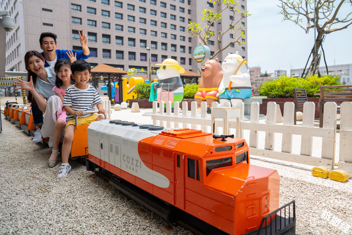 【和逸飯店・台南西門館】戶外400坪奇趣操場隨處可見卡通頻道中超人氣的探險活寶、飛天小女警、熊熊遇見你等卡通人物