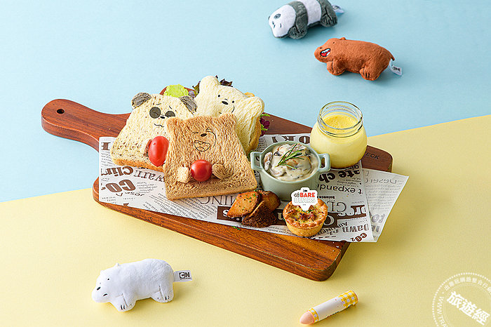 【和逸飯店・台南西門館】推出「熊熊遇見你」主題下午茶,將大大、胖達和阿極三隻可愛的角色巧妙融入到早午餐拼盤