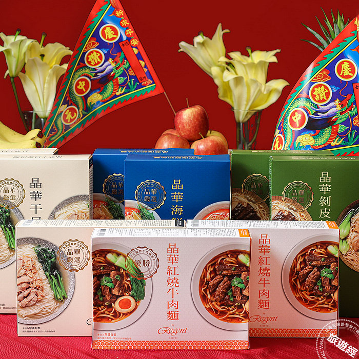 除了「祈福三寶」外,晶華也把各式常溫麵點禮盒集合成「麵麵俱到彭湃組」,三盒干貝雞湯麵、以及紅燒牛肉麵、剝皮辣椒雞湯麵和海鮮叻沙麵各二盒,9盒優惠價1,999元,體面的包裝以及市場肯定的美味,展現滿滿的誠意。