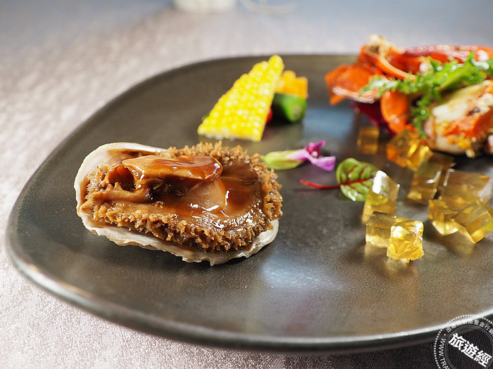 麻辣鮮鮑:嚴選鮮活的五頭南非鮮鮑,洗淨燙熟備用,另起鍋放入以辣椒、花椒、鹽、糖、香葉、桂皮等香料調配而成的滷汁,加熱煮滾再放入先前備用的鮑魚,隨即關火,使其浸泡在滷汁中,待涼後再放入冰箱中繼續醃漬一晚而成。