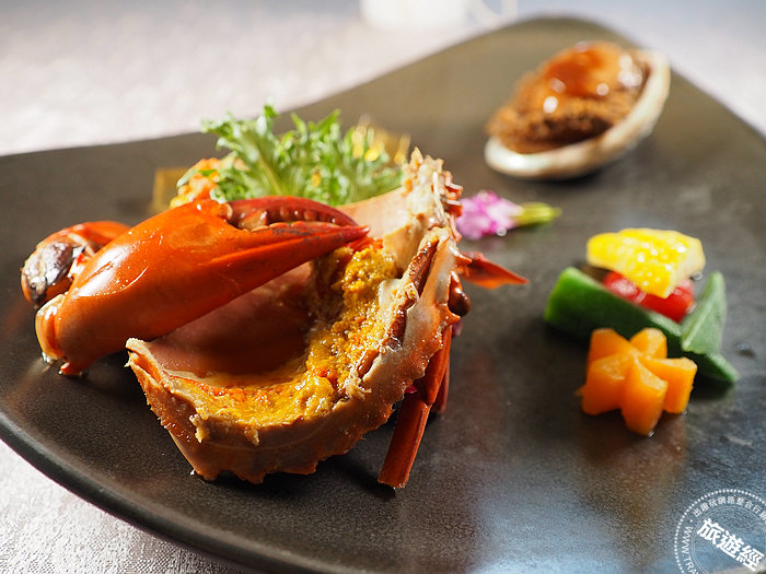 醉蟹:簡師傅將上海名菜 – 生醃蟹改良,除了減少醃料的份量外,更將原本的生蟹改為熟蟹,選用膏肉肥美的紅蟳,先蒸熟後,再以紹興酒、醬油、糖的秘制調料泡醃一晚,陳年酒香伴隨鮮甜黏糯的膏蟹,吮指有味。