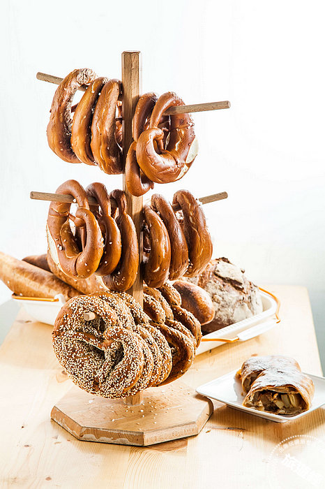 有了啤酒也少不了美食,在晶華主廚團隊打造的多款巴伐利亞佳餚中,首推由起司香腸、德國肉腸、德式圈腸、德國啤酒肉片、黑胡椒牛肉片、康門貝爾起司、醃漬黃瓜、法式芥末醬、四季百花蜜、季節綜合果乾以及德式扭結麵包等經典元素組成的「巴伐利亞綜合肉盤」,Q彈多汁的德式肉品與香滑順口的起司搭配鹹香厚實的德式麵包,讓人大呼過癮。