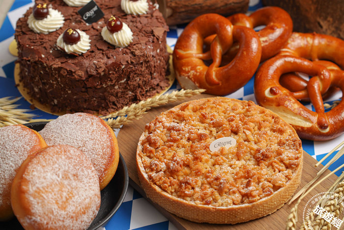 甜點也是活動中不可缺少,晶華甜點主廚為此次活動精心打造了德國傳統黑森林蛋糕、蘋果派,「歐嬤德式烘焙坊」則是帶來了啤酒節造型糖霜心型薑餅、肉桂香酥杏仁果、肉桂香酥杏仁果、法蘭司肉桂捲和柏林娜等近20種的各式糕點,琳瑯滿目的甜品帶來甜蜜的秋日氛圍。