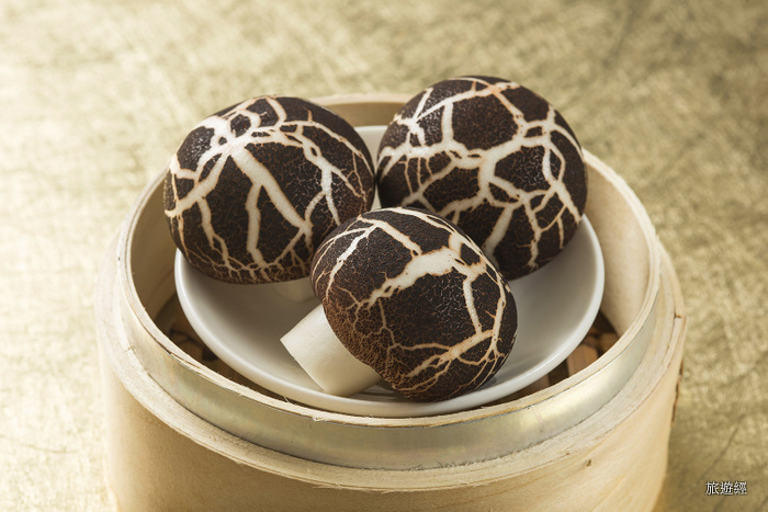 台北圓山金龍餐廳許耀光主廚也有一款菇菇造型的港點,名叫「奶香菇菇包」,外表是用可可粉與麵粉做出香菇形狀,內含奶黃餡,剛出爐趁熱吃,不僅能品嚐到奶黃香,還能感受到爆漿的心動滋味!每份三個NT$220。