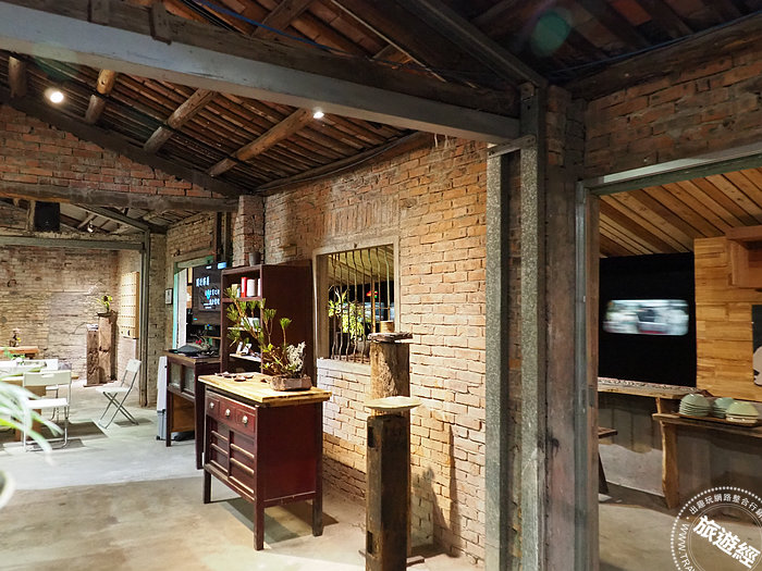 「夥房」故名思義,有多位斜槓夥伴通力合作,一起分享的天地,夥房看上去是幢上了「年紀」的土角厝,位於新北市鶯歌區中正二路上,屋後緊鄰鐵路,火車時不時呼嘯而過,雖然火車讓屋內轟轟作響,但對於初來乍到的客人而言,很是新鮮有趣!這裡的「陳」舊物件、老紅磚、朽木枯枝……等伴隨著花藝、書法、與工藝作品、展現特有的「藝」種氛圍,倒也有一種說不盡的「禪」意,在歇腳的同時,捧著茶碗,沏好熱茶,等待的餐食的進行曲,也是一種「靜」與「意」!