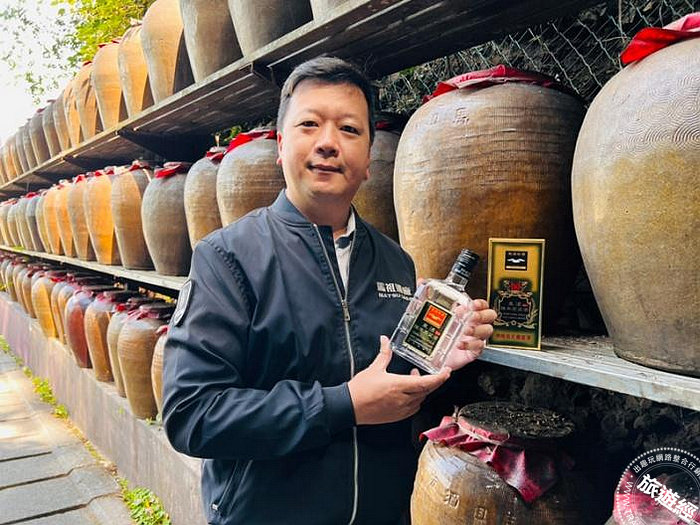 馬祖酒廠總經理劉九銘手中拿的是「0.6公升45度-東湧陳年高粱酒」,參加2022美國舊金山世界烈酒競賽,創下台灣史上首度在白酒品項奪得鉑金獎platinum最高殊榮的紀錄。(圖:馬祖酒廠提供)