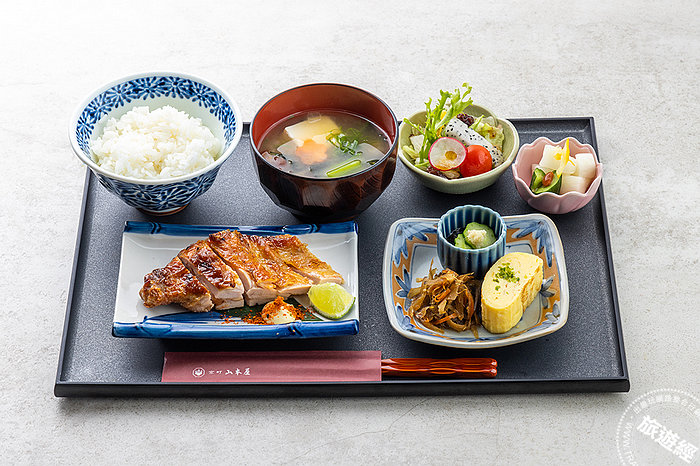 九、七味烤雞腿排定食:「京町 山本屋」每月都推出不同的「月替定食」,三月份則為「七味烤雞腿排定食」。七味烤雞腿排是主廚珍藏的私房菜,透過特別的調味醃製後再烤,表面會有焦化烘烤的焦糖色,而用日本七味辣椒粉一起醃製可增添味道的精緻度,也有加入檸檬去腥味,成為外皮焦香肉汁鮮嫩的雞腿排!