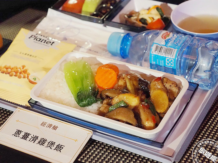 經濟艙主菜──「薑蔥滑雞煲飯」是款道地的廣東佳餚,雞肉鮮美滑嫩,以薑、蔥爆香,噴香米飯淋上主廚特調煲飯醬汁,雞滑味濃,香氣十足,讓人回味無窮。