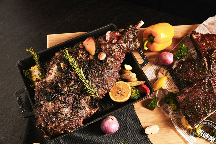 除了重磅烤肉,還有不定期出現「隱藏版」美食將帶來無限驚喜,像是「香烤鳳梨火腿」,選用整塊煙燻火腿,透過低溫爐烤保留肉汁,吃來更帶有蜂蜜香氣,且肉質Q彈,享用時若再搭配廚藝長特調的鳳梨醬,口感更是絕配,整體滋味酸甜解膩;另外還有「炙烤帶骨牛小排」,特別選用美國帶骨牛小排,吃來帶有筋膜肉香,牛油香氣豐潤滿溢而且嚼勁十足。