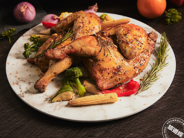 而「橙汁BBQ醬烤豬肋排」則是選用國產豬肋排,用蔬果香料醃製,並手工熬煮柳橙果醬,一同與豬肋排低溫慢烤,烤到骨肉分離,吃來鮮嫩入味;還有「芥末醬烤半雞」,廚藝團隊嚴選國產重達一公斤的全雞,搭配特調芥末醬和橄欖油等香料提味烤至金黃,吃來外皮酥香,雞肉軟嫩多汁。