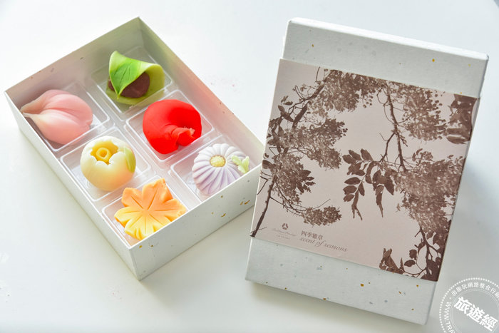 「四季雅章」和菓子禮盒,每盒包含六款和菓子,四款象徵春、夏、秋、冬四季的自然景緻,及兩款象徵日本的菊花與台灣的梅花,售價1,200元_盒。