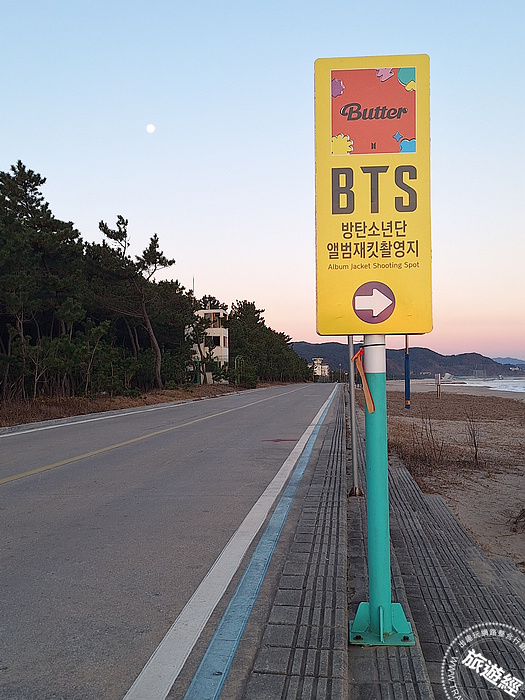 說到江原道海邊,除了江陵注文津領津海濱以及BTS公車站注文津鏡浦海濱外,還有一處絕對還有一處是「ARMY」們認定一定要去的海邊,那就是三陟市的「孟芳海邊」,距三陟市區約7公里的示範海水浴場,海岸旁基礎道路設施完善!而且BTS受歡迎的《Butter》專輯,內頁使用的躺椅、遮陽傘、沙灘排球網、裁判椅等佈景,就是在「孟芳海邊」,為了讓孟芳海邊有了更新的「招」氣,這裡還有大型的BTS英文字母造景,以及專輯封面的黃色標示牌。