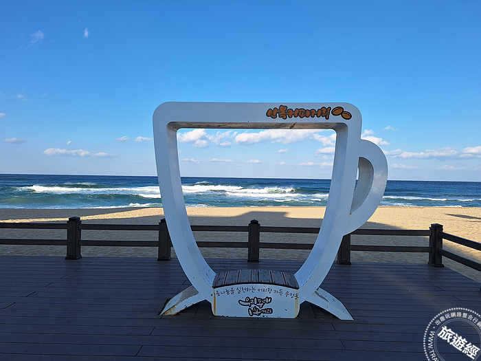 江陵的安木海邊,沿著海邊道路林立,有許多咖啡廳,又稱為安木海邊咖啡街,算算數量絕對超過20餘間咖啡廳。除了知名的咖啡連鎖專賣店以外,也有別具特色的咖啡廳,咖啡廳面對蔚藍的東海與白淨的沙灘,還可以一邊欣賞安木海邊的美麗景色,海邊也有很多裝置藝術,相當適合拍照,尤其此時海鷗群飛,為安木海邊增加了許多生氣,值得一提的是,海中還有一個鏤空的愛心形狀的非常特別,到此不妨來找這一顆岩石拍照。另外,以咖啡聞名的江陵,每年還有江陵咖啡節,遊客到此,可選一間您喜歡的咖啡廳,一邊享受悠閒的咖啡時光,還能品嚐各式各樣的咖啡及甜品。