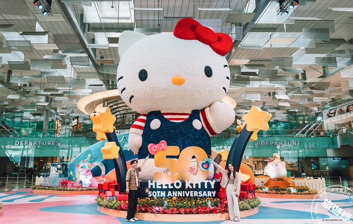 新加坡樟宜機場即日起至2025年2月26日變身成為三麗鷗的夢幻世界,為慶祝Hello Kitty 50週年慶,打造一系列「樟宜園遊會」活動(樟宜機場提供)