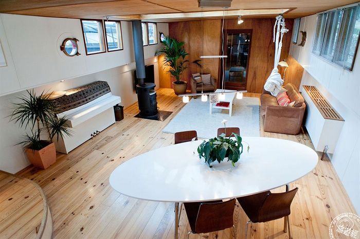 八、海上航海夢,位荷蘭阿姆斯特丹,在運河帶東區的船屋飯店公寓,船屋在熙來攘往道路旁有著獨特私人的空間,廚房客廳設備應有盡有,是想要花多一些時間探索城市旅客絕佳的選擇。