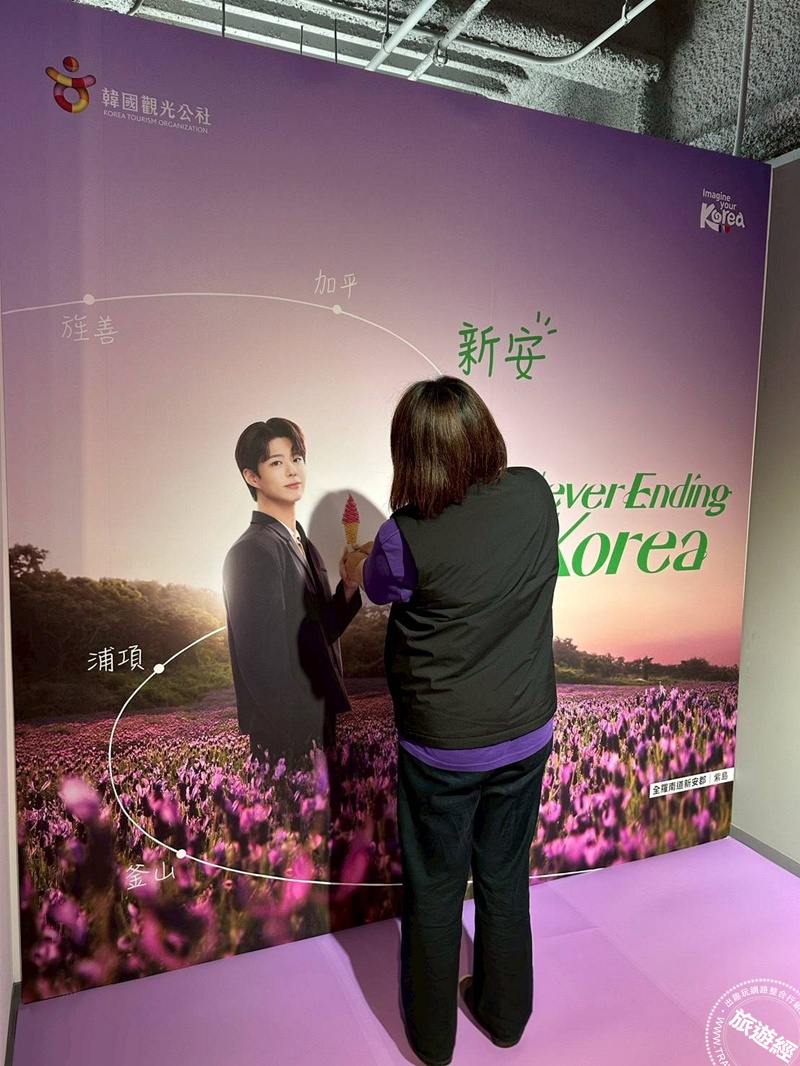 新年一開始,韓國觀光公社先將於明(7)日起至2月13日止,在台北KOREA PLAZA推出一系列精彩的迎新春主題活動。活動一大亮點,便是為韓國觀光名譽宣傳大使朴寶劍打造的專屬「寶劍ZONE」。韓國觀光公社將全羅南道新安郡的紫島主題搬進KOREA PLAZA,現場不僅設置有朴寶劍大型背牆、人形立牌,更特設紫島熱門景點「紫色電話亭」,提供粉絲們絕佳的拍照打卡點,粉絲只要在「寶劍ZONE」完成指定拍照打卡任務,即可獲贈朴寶劍為宣傳韓國觀光,特別於忠清南道保寧市川北青麥田、首爾特別市昌德宮後苑、全羅南道麗水市蓋島青石浦海水浴場等知名景點拍攝的限量明信片,邀請粉絲循著朴寶劍的足跡,規劃一場與「寶劍同遊」的深度韓國之旅。