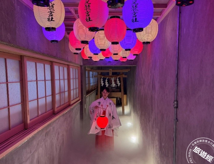 穿過燈籠懸垂的長廊,薄霧如雲般氤氳,光影交錯之間營造出夢幻又神祕的通道,彷彿引領訪客走入另一段時空。©潮見龍宮