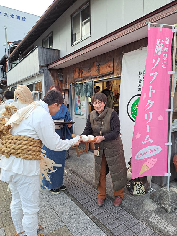 熱情店家準備溫暖甘酒熱飲提供「上り子」飲用暖身打氣。 ( 攝影 / 廖晨光 )