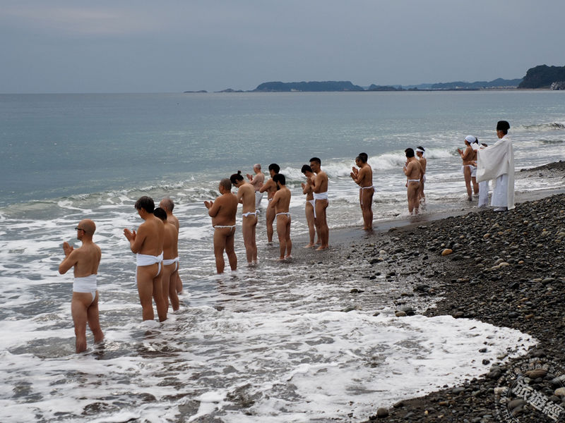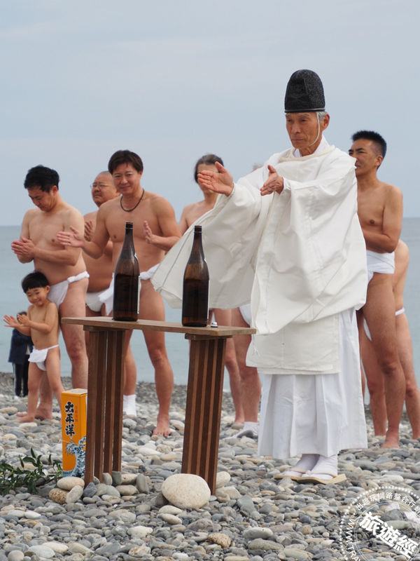 祭典的儀式感,是從肉體的極致磨練開始的。在 2 月 6 日祭典當日上午,城市甦醒,參與夜間火祭的男性「上り子」便陸續前往新宮市著名海岸—王子之濱(王子ヶ浜)。在這片面向太平洋的海灘上,舉行的是「御燈祭」的重要開端「垢離取(こりとり)」淨身祈福儀式。