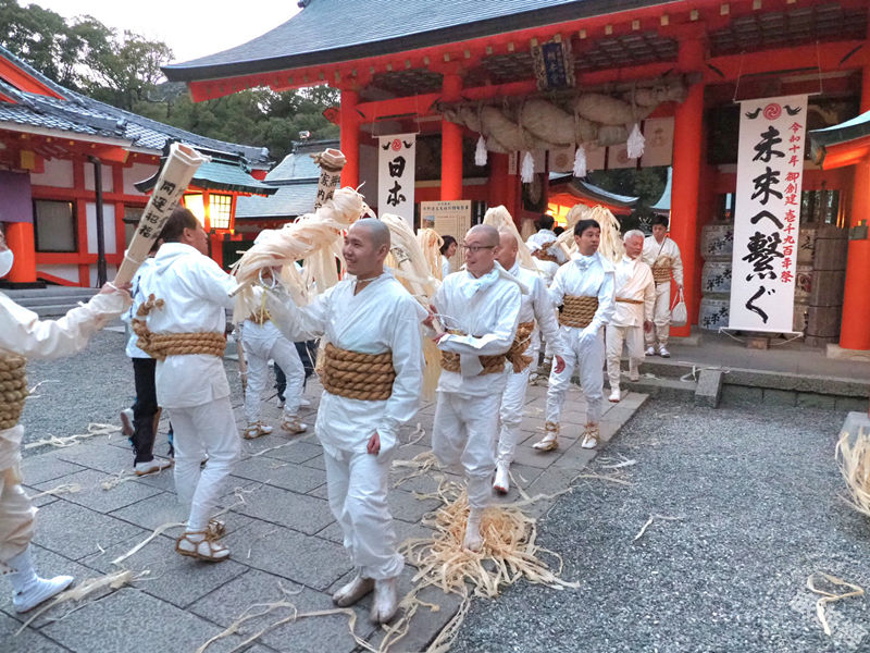 白衣、麻繩與尚未點燃的火把 午後巡行新宮市
