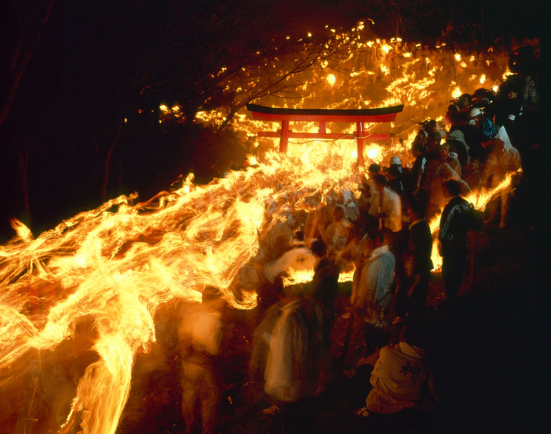 「御燈祭」起源於日本古代對火的崇拜,被視為一種「火的洗禮」。在古老的泛靈信仰中,火具有「重生」與「淨化」的雙重意義。此祭典傳統上象徵著迎接新的一年,於每年二月初春舉行火祭,相傳為了透過神聖的火焰驅散冬日的陰邪與穢氣,並祈求新的一年五穀豐登、家庭平安。這場祭典最獨特之處在於其仍遵循嚴格的傳統:它是「男人的祭典」!至今仍維持「女人禁制」的古禮進行,祭典期間女性不得進入神倉山境內。這並非單純的性別隔閡,而是為了維持祭典原始的陽剛力量與宗教神聖性。因此,女性多會聚集在山下參道兩旁等候,迎接家人完成儀式平山下山。