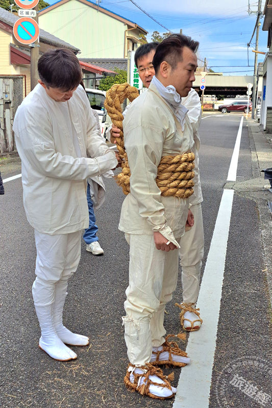 「上り子」換上傳統白色祭裝,身著白衣、腰綁粗麻繩,腳穿白布草鞋 ( 攝影 / 廖晨光 )