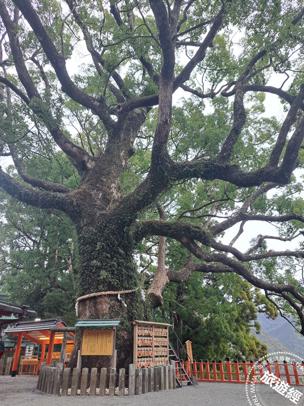 圖說:熊野那智大社旁的大樟樹(樟靈社),樹齡 850 年,樹幹中心已中空,信徒可以手持願望木牌穿過樹洞,祈求除厄轉運。(攝影/ 廖晨光)