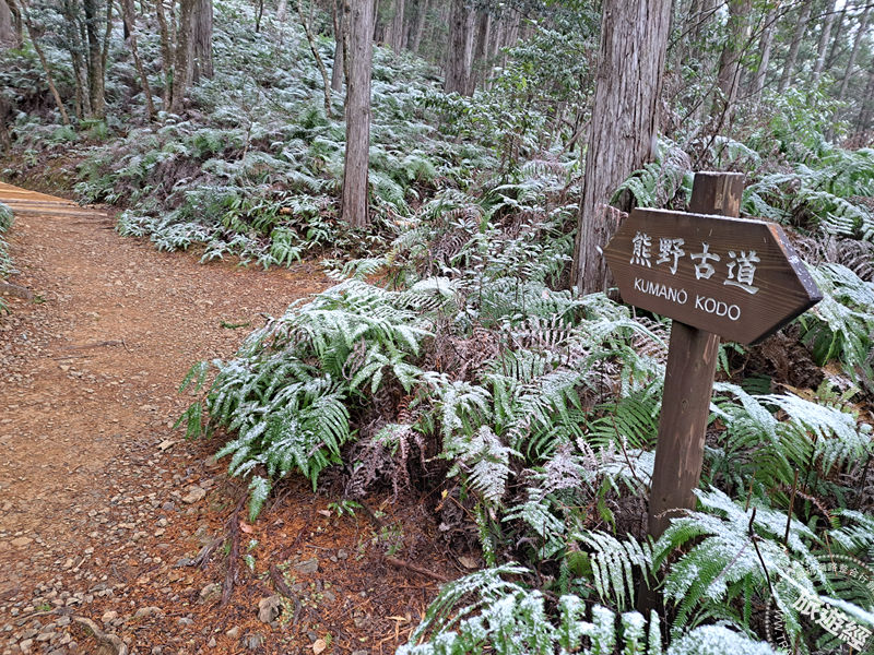 圖說:前往熊野本宮大社的步道上,喜遇了一場初綻的瑞雪。 (攝影/ 廖晨光)