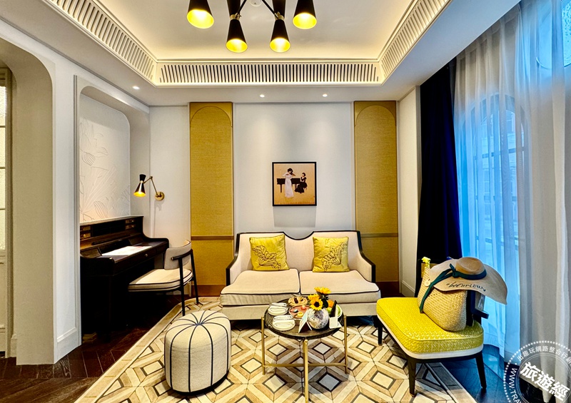 全館僅有29間套房,室內設計延續希爾頓格芮精選酒店的招牌故事性,以虛構音樂家Tran的旅行故事為靈魂,將其在旅途上的遊歷與見聞,化成動人樂章,也把文藝氣息帶入旅行生活。黑膠唱片裝飾的房門、以鋼琴為藍圖設計的書桌,讓人踏入房門,宛如走進藝術家的隱居之所。其中,「索倫托套房」系列更以作家、畫家與雕塑家為名,打造作家之隅、畫家居所及雕塑家之境等主題系列。若幸運住到海景房,透過全景落地窗,可以將「親吻橋」與海平面的壯麗剪影,框成一幅專屬的私人收藏。