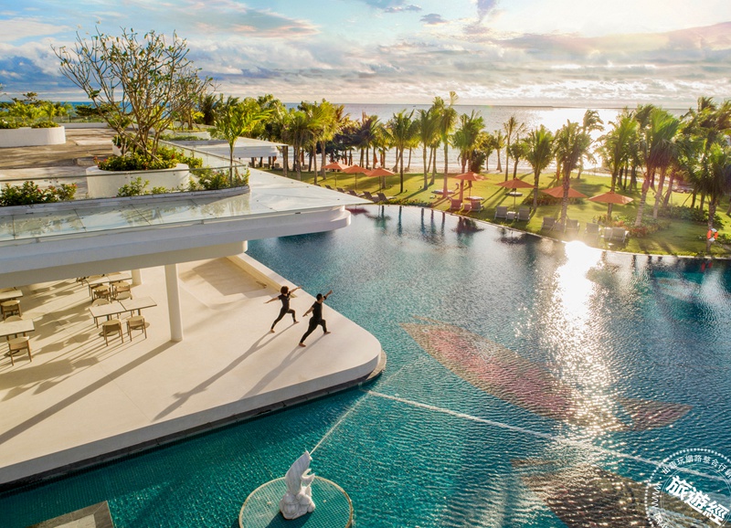 依偎在翡翠灣畔的JW萬豪度假酒店,貝殼造型的泳池呼應純白的沙灘,景色夢幻銷魂。(圖片:酒店提供)