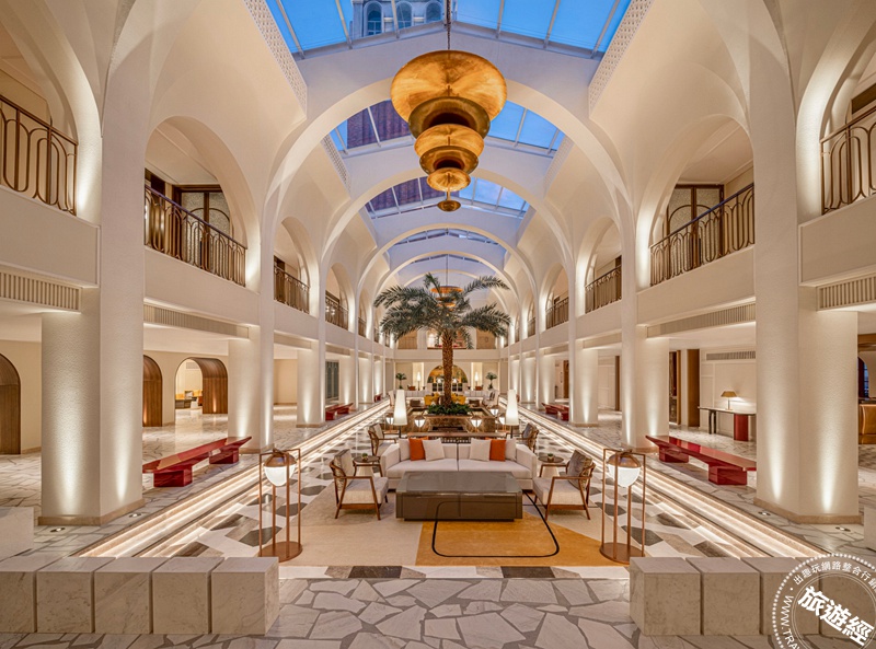 酒店依偎著翡翠灣(Khem Beach),9公頃腹地共有231間客房與別墅,每一處都經過精密構思、如同一場空間藝術策展,從標準套房到適合家族同遊的獨棟別墅,不同主題搭配不同色系,或夢幻浪漫或優雅古典。入住其中,猶如走進一座「活生生的學院」,從圖書館般的接待大廳、化學系實驗室的酒吧,到以植物學為靈感的水療場域,都令人新奇。事實上,酒店許多擺設和物件,是設計團隊前往歐洲尋回的拉馬克相關古董文物,奢華中散發雋永的美感。