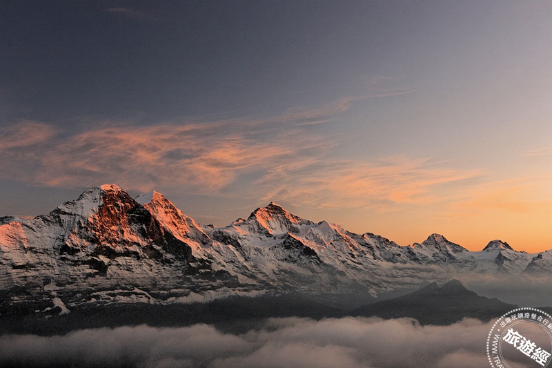 阿爾卑斯山區艾格峰、僧侶峰與少女峰(由左至右)Eiger, Mönch und Jungfrau。圖_格林德瓦旅遊局提供