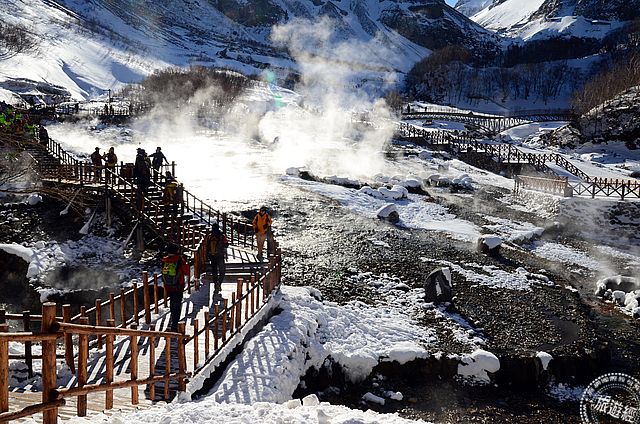 長白山風景區內的景點之一「聚龍泉」是天然溫泉源頭,美如詩畫。(圖片提供╱李麗文)